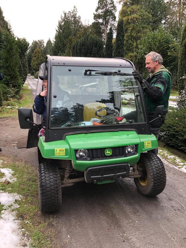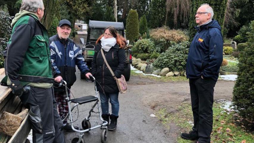 Zwölf Jahre hat er dort als Friedhofsgärtner gearbeitet und nach eigener Erzählung ganz besondere Menschen gefunden, die ihm aus der Obdachlosigkeit und einer schweren Lebenskrise herausgeholfen haben. Nun war es sein sehnlichster Wunsch, diese Menschen an seiner ehemaligen Wirkungsstätte noch einmal zu treffen. Und so ging die Reise am 4. Februar vom Kieler Karl-Lennert-Krebscentrum ins 280 Kilometer entfernte Varel, wo Herr D. vom ehemaligen Chef und früheren Kollegen herzlich in Empfang genommen wurde.